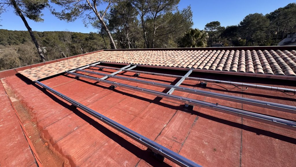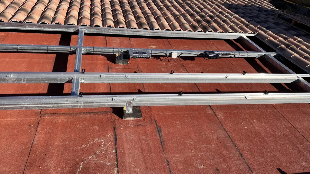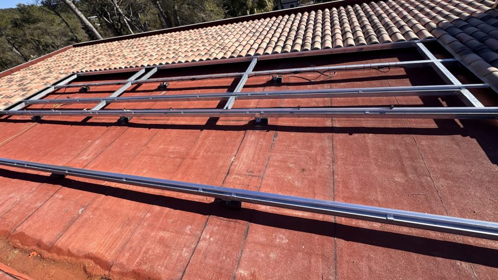 • Installation triphasée sur toit béton avec charpente en acier pour les rails
